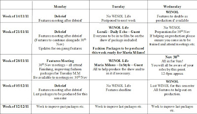 On Monday we will discuss everything for the next few weeks, and discuss all angles for all features due to be produced.